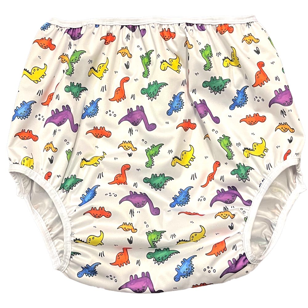 Dinos is made with a 100% polyester knit. This cute and colourful PUL waterproof pant features a polyurethane waterproof coating on the inside. It is soft, quiet, cool and breathable. Lycra waist and leg elastic bands, soft and does not pinch the skin. Machine wash using warm water and a mild detergent. Hang to dry or tumble dry on low.